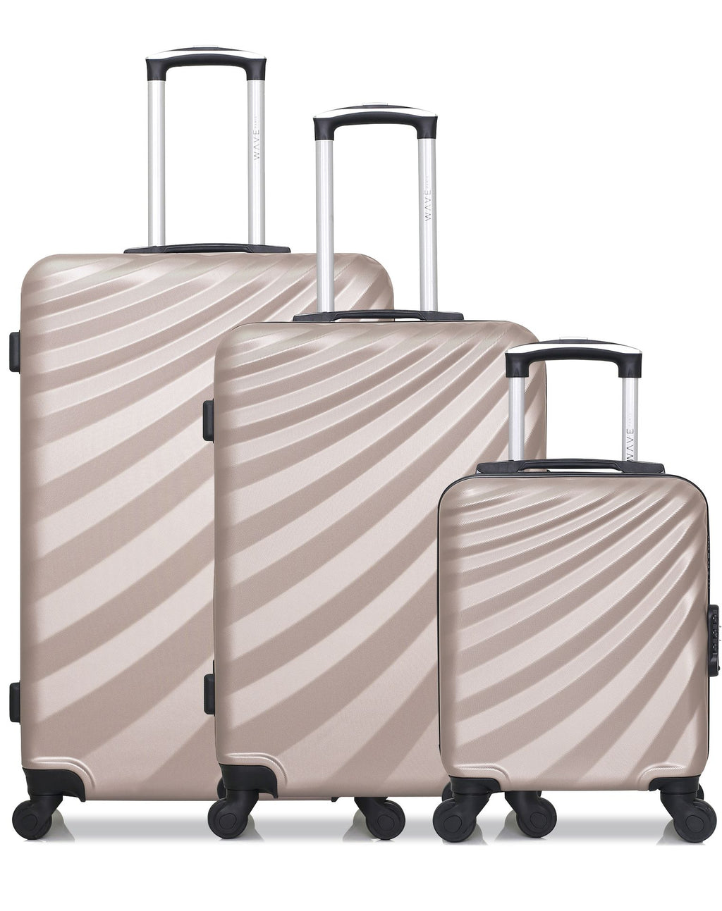 Les 3 valises de ce set sont élaborées de la même façon : un trolley réglable, une coque rigide et à l'intérieur, 2 compartiments doublés et de même dimension. La coque rigide des valises Wave Paris en ABS permet de sécuriser vos effets personnels contre les heurts rencontrés au cours de vos trajets. Vous pouvez parvenir rapidement au contenu de vos valises instantanément grâce à la fermeture à glissière munie d'une serrure à combinaison.